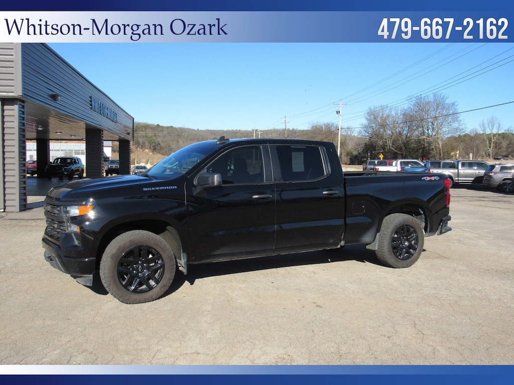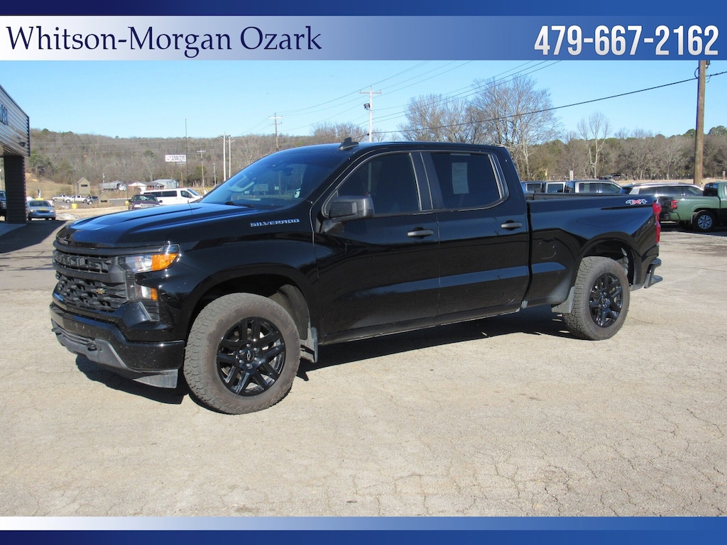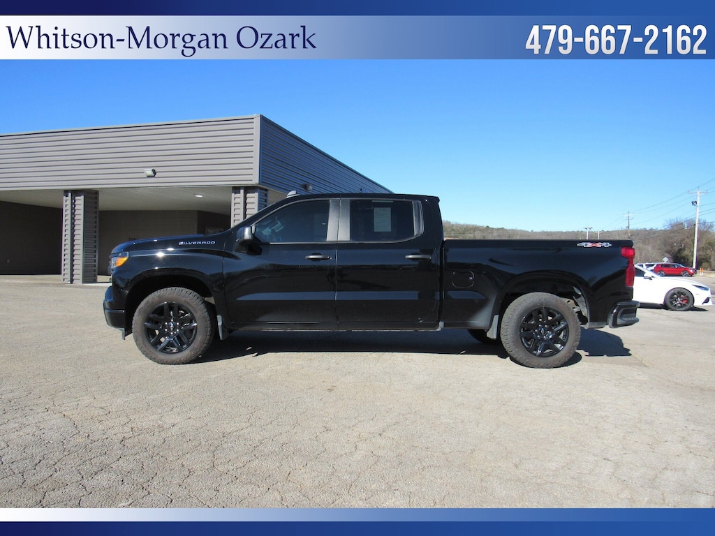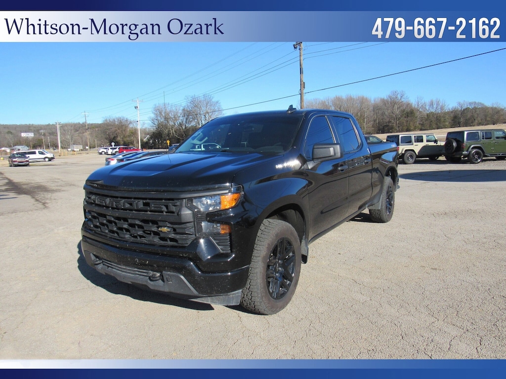 **2024 Chevy 1500 Crew Cab 4wd Custom ** Factory 20 Inch Black Alloy Wheels ** Forward Collision Alert w/ Auto Emergency Braking, Front Pedestrian Braking, Lane Keep Assist, Follow Distance Indicator, Rear Vision Camera ** 7 Inch Touchscreen w/ Apple Carplay, Android Auto, Satellite Radio, Bluetooth, Onstar ** Remote Vehicle Start ** Trailer Towing Pkg w/ Hitch Guidance ** 10 Way Power Driver's Seat ** LED Cargo Area Lighting ** EZ Lift, Power Locking Tailgate ** Body Colored Bumpers & Accents ** 120V Power Outlet in Cargo Bed ** Remote Keyless Entry w/ Push Button Start ** Very Sharp and Nicely Equipped Chevy **