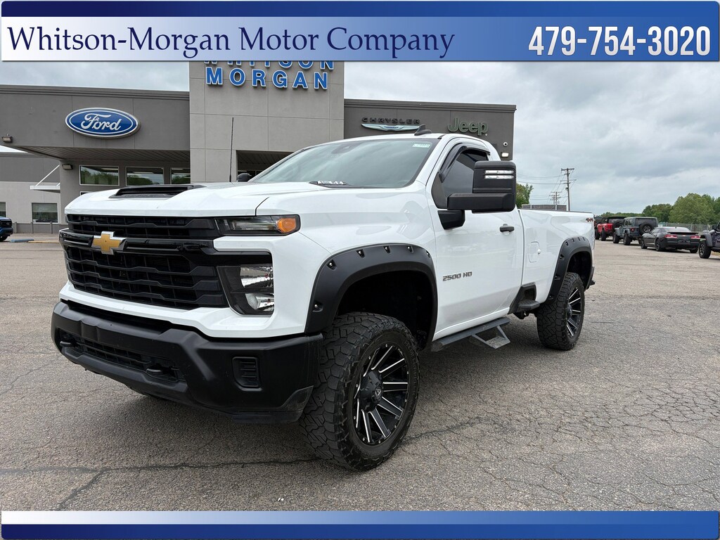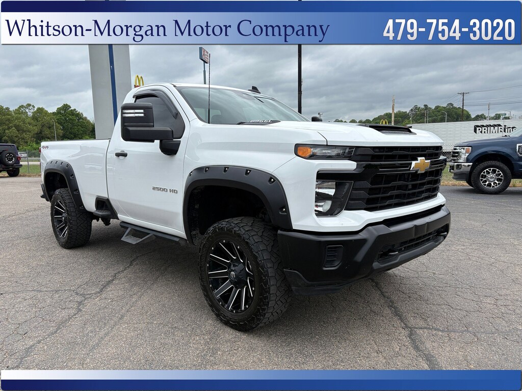 **2024 Chevy 2500 Regular Cab 4wd Work Truck ** Leveling Kit (Raises the truck appx 2 inches) ** Aftermarket 20 Inch Black Alloy Wheels by Fuel w/ 4 New Oversized Mud Terrain Tires (Appx 34-35 Inches Tall) ** Aftermarket Black Fender Flares ** 6.6L Gas Engine ** 7 Inch Touchscreen, Apple Carplay, Android Auto, Bluetooth ** HD Rear Vision Camera w/ Hitch Guidance ** Forward Collision Avoidance, Lane Departure Warning, Auto Emergency Braking, Front Pedestrian Braking ** Power Windows & Locks ** Remote Keyless Entry** Black Bumpers, Black Mirrors & Aftermarket Black Fender Flares ** Air Conditioning ** Trailer Tow Pkg ** Very Sharp Chevy, Aggressive Stance **