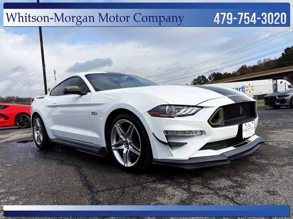**2019 Mustang GT ** GT Performance Package ($3995 option) ** 5.0L Coyote V8 w/ 10 Speed Automatic ** Over-the-Top Racing Stripes ** Factory 19 Inch Nickel Painted Alloy Wheels ** Performance Pkg includes - High Wing Rear Performance Spoiler, Larger Radiator, Larger Brake Rotors, 3.73 TORSEN Limited Slip Rear Diff, Guage Pack w/ Oil Pressure and Vacuum Guages, HD Front Springs) ** Active Valve Performance Exhaust w/ Aftermarket High Performance Exhaust ** Front Chin Splitter and Side Skirts ** Track Apps ** Sync3 w/ 8 inch touchscreen, Apple Carplay, Android Auto, Satellite Radio, Bluetooth ** Reverse Sensing System w/ Rear Vision Camera ** Adjustable Driving Modes ** Performance Hood Vents ** LED Headlights & LED Sequential Taillights ** LED Fog Lights ** Power Driver and Power Passenger Seat ** Dual Zone Automatic Climate ** Very Sharp and Track Oriented Mustang GT ** Very Aggressive Stance **