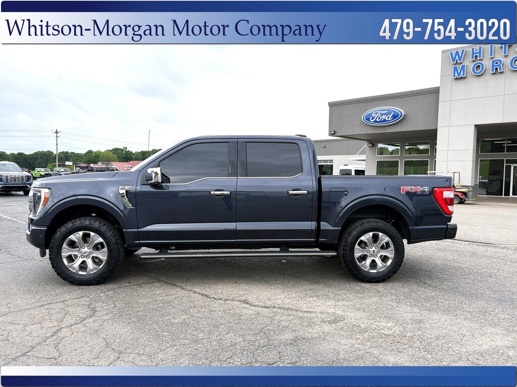 **2022 F150 Crew Cab 4wd Platinum in Smoked Quartz Metallic ** B&O 18 Speaker Unleased Audio w/ Sync4, Navigation, 12" Touchscreen, Apple Carplay, Android Auto, Satellite Radio, Bluetooth, 4G wifi ** Bluecruise Handsfree Driving Capable ** Multi Contour Active Motion Message Front Seats ** FX4 Offroad Pkg ** Ford Co Pilot 360 Assit 2.0 w/ Adpative Cruise Control, Blind Spot Monitoring, Pedestrian and Cross Traffic Detection, Lane Keep Assistance w/ Lane Monitoring, Cyclist Detection, Forward Collision Avoidance, Auto Emergency Braking, Evasive Steering Assist, Front & Rear Park Assistance, 360 Degree Camera Pkg ** Premium Leather Interior w/ Dual Power, Heated & Ventilated Front Captain's Chairs w/ Driver Memory, Heated 2nd Row, Heated Steering Wheel ** Power Tailgate ** Premium Alloy Wheels w/ 4 New and Aggressive Offroad Tires ** 3.5L Ecoboost ** LED Cargo Box Lighting ** Tow Technology Pkg ** Zone Lighting ** Power Folding, Heated Mirrors w/ Approach Lighting ** LED Headlights, LED Tailights, LED Fog Lights ** Interior Ambient Lighting ** Remote Vehicle Start ** Remote Keyless Entry w/ Keypad on Driver's Door ** Power Tilt/Power Telescoping Steering ** Local Trade In ** VERY High Optioned Platinum**