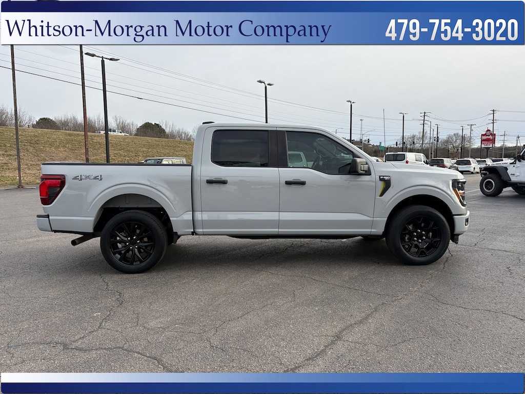 **2024 F150 Crew Cab 4wd STX in Avalanche Gray (Great Color) ** 12 Inch Center Touchscreen, Sync4, Apple Carplay, Android Auto, Bluetooth, Ford Pass Connect w/ 5G wifi ** Factory Black 20 Inch Alloy Wheels ** Blind Spot Monitoring w/ Cross Traffic Alert, Forward Collision Warning w/ Auto Emergency Braking, Lane-Keeping System, Post Collision Braking, Reverse Sensing w/ Rear Vision Camera ** Class IV Trailer Hitch w/ Smart Trailer Tow Connector ** Remote Keyless Entry ** Body Colored Bumpers **