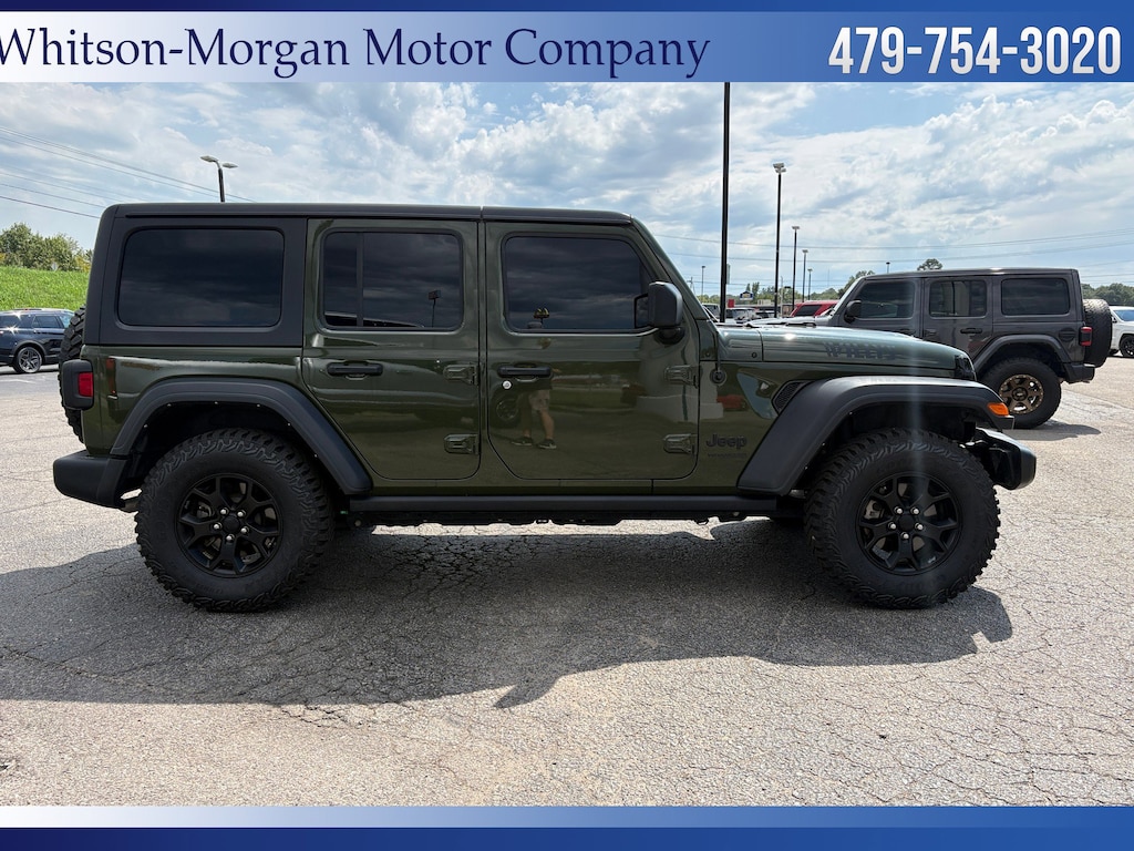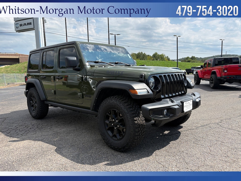 **2021 Jeep Wrangler 4dr Willy ** Sarge Green ** 3.6L V6 ** Technology Group ** Heated Seats and Heated Steering Wheel ** 7 Inch Touchscreen, Apple CarPlay, Android Auto, Bluetooth, Satellite Radio ** 17 Inch Black Moab Alloy Wheels with New Mud Terrain Tires ** 3 Piece Hardtop ** Remote Vehicle Start ** Remote Keyless Entry ** Power Windows, Locks, Power Heated Mirrors ** Auto Climate Control ** Rear Vision Backup Camera ** LED Headlights and LED Fog Lights ** Skip Plates ** Anti Spin Rear Axle