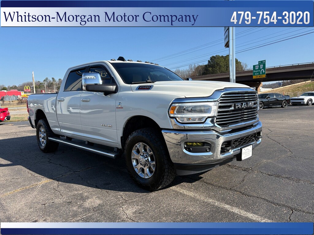 **2023 Ram 2500 Crew Cab 4wd Laramie in Pearl White Exterior ** 6.7L Cummins Diesel ** Navigation ** Alpine Premium Factory Audio w/ 12 Inch Center Touchscreen, Apple Carplay, Android Auto, Satellite Radio, Bluetooth, 4G Wifi ** Premium Leather Interior w/ Heated & Ventilated Front Captain's Chairs, Dual Power Front Seats, Driver Memory Seating ** Tow Technology Group w/ Trailer Reverse Guidance, Surround Vision Camera, Rear Cargo View Camera ** Blind Spot Monitoring, Cross Traffic Detection, Front & Rear Park Assist Sensors ** Heated Steering Wheel ** Remote Vehicle Start ** 18 Inch Polished Alloy Wheels ** Chrome Bumper Package ** Protection Group w/ Skid Plates ** Power Folding, Heated, Trailer tow Mirrors ** Remote Tailgate Release ** Power Sliding Rear Glass ** Anti Spin Rear Axle ** Spray In Bedliner **