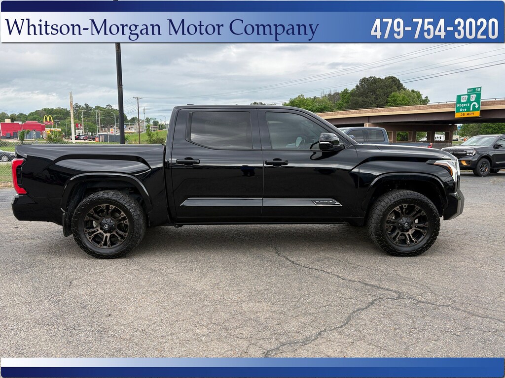 **2024 Tundra Platinum 2wd ** Panoramic Dual Pane Sunroof ** 14 Inch Touchscreen, JBL Premium Audio w/ 12 Speakers, Navigation, Apple Carplay, Android Auto, satellite radio, Bluetooth, Wifi ** Premium Leather Interior w/ Dual Power, Heated & Ventilated Front Captain's Chairs w/ Memory ** Heated & Ventilated 2nd Row Seats ** Heads Up Display ** Power Deploying Running Boards ** Factory 20 Inch Dark Gray Alloy Wheels ** Panoramic View Monitor w/ Cameras ** Blind Spot Monitoring, Pedestrian Detection, Forward Collision Avoidance, Auto Emergency Braking, Lane Keep Assist, Rear Cross Traffic Alert, Lane Tracing Assist ** Dynamic Radar Adaptive Cruise Control ** Power Tailgate w/ Bump Switch on the Taillight ** Power Folding, Heated Mirrors w/ Turn Signal Indicators & Approach Lamps ** LED Reverse Assist Light ** LED Headlights, LED Taillights, LED Fog Lights ** 120V 400W Power Outlet mounted in the bed ** Trailer Towing Pkg ** WIreless Charging ** Dual Zone Auto Climate ** BEAUTIFUL & HIGHLY Optioned Tundra **